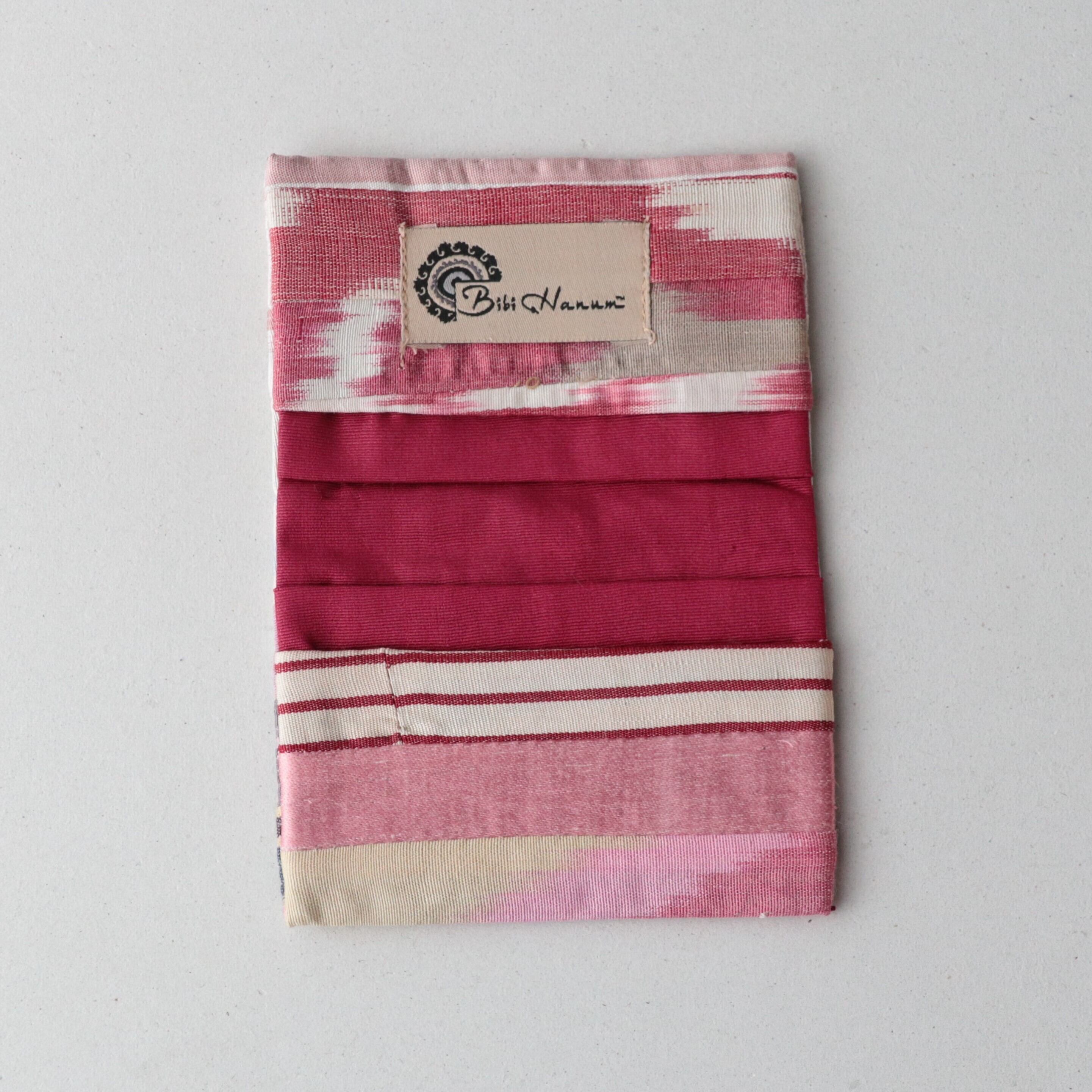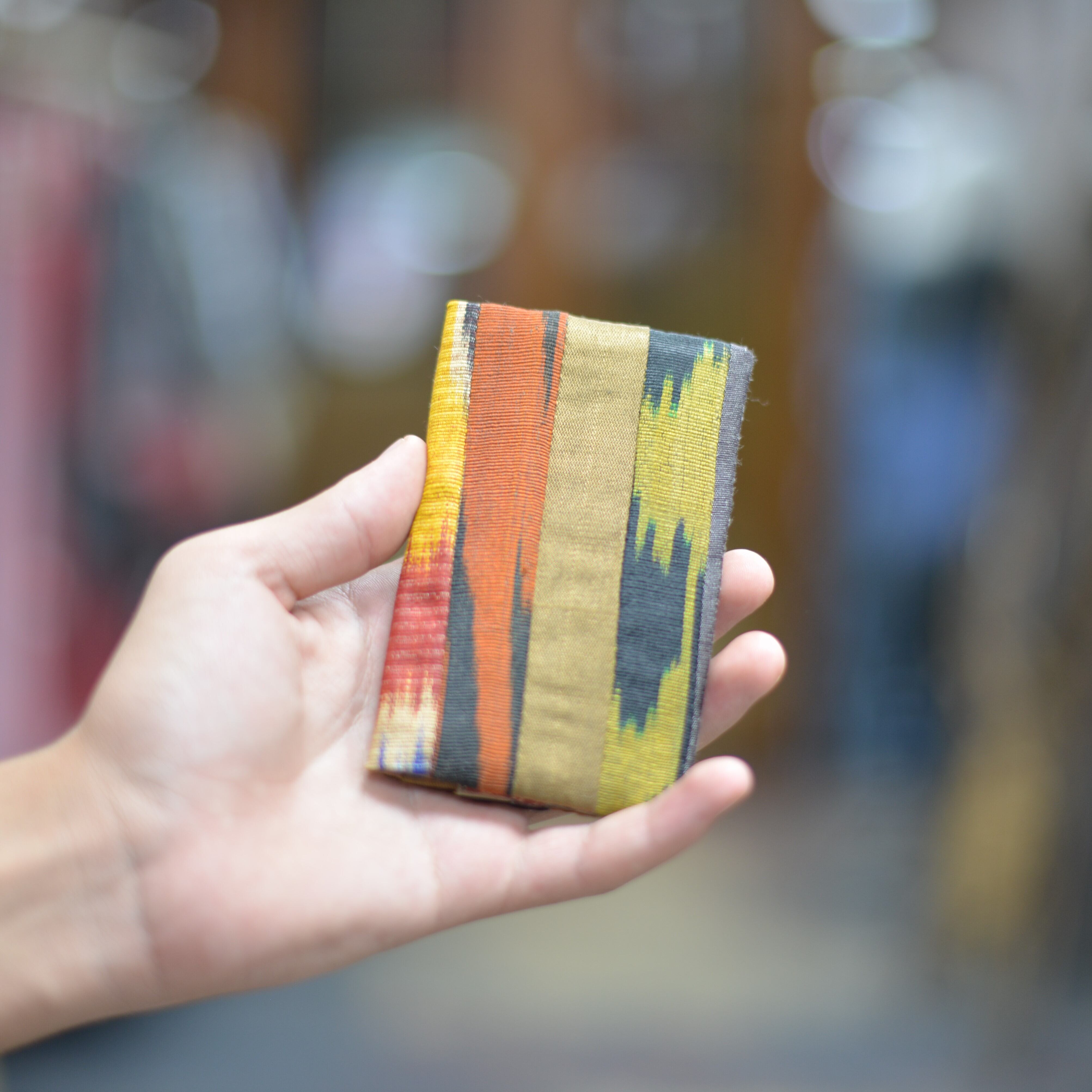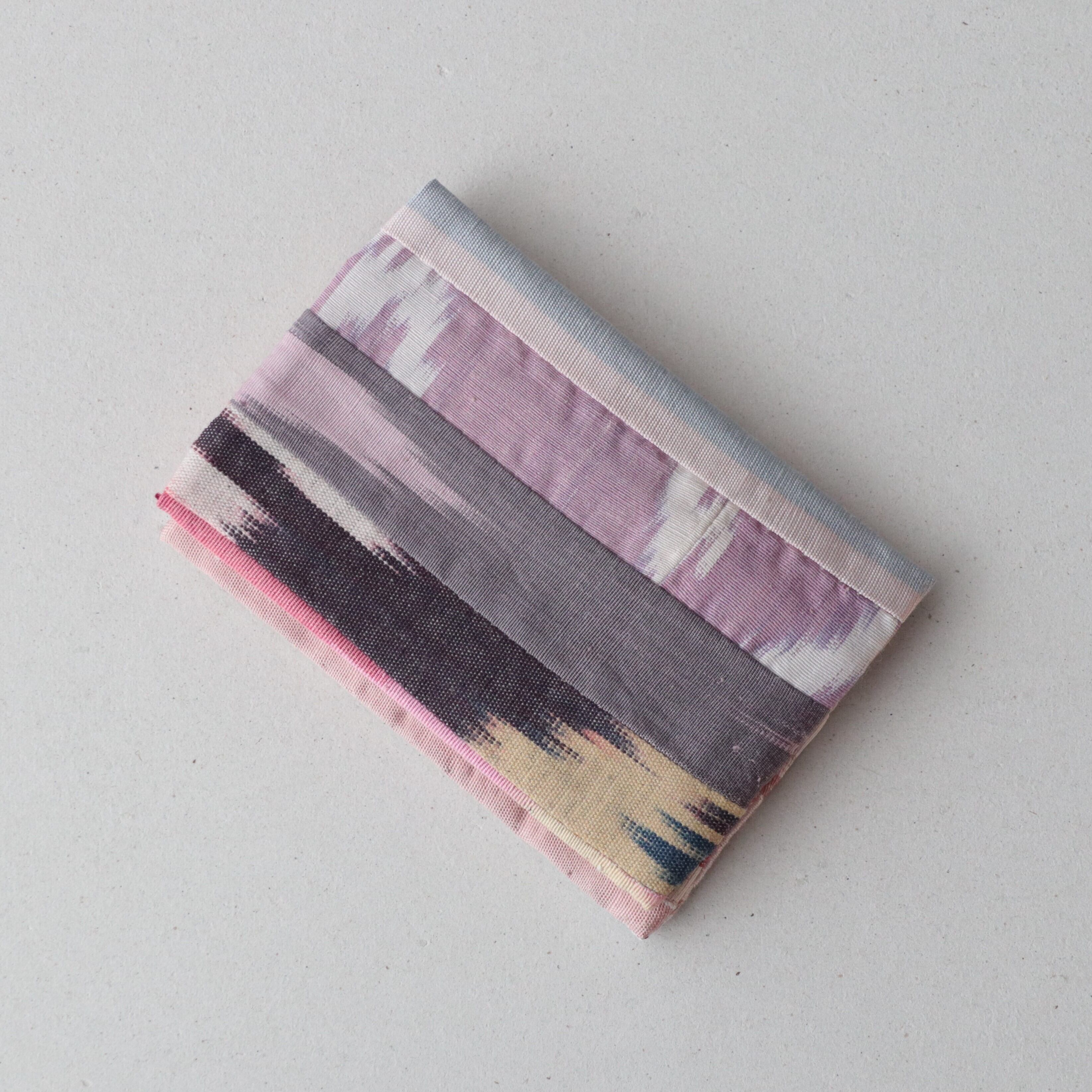 手織りイカット(絣)の端切れをパッチワークにし、名刺入れ/カードケースを作りました。