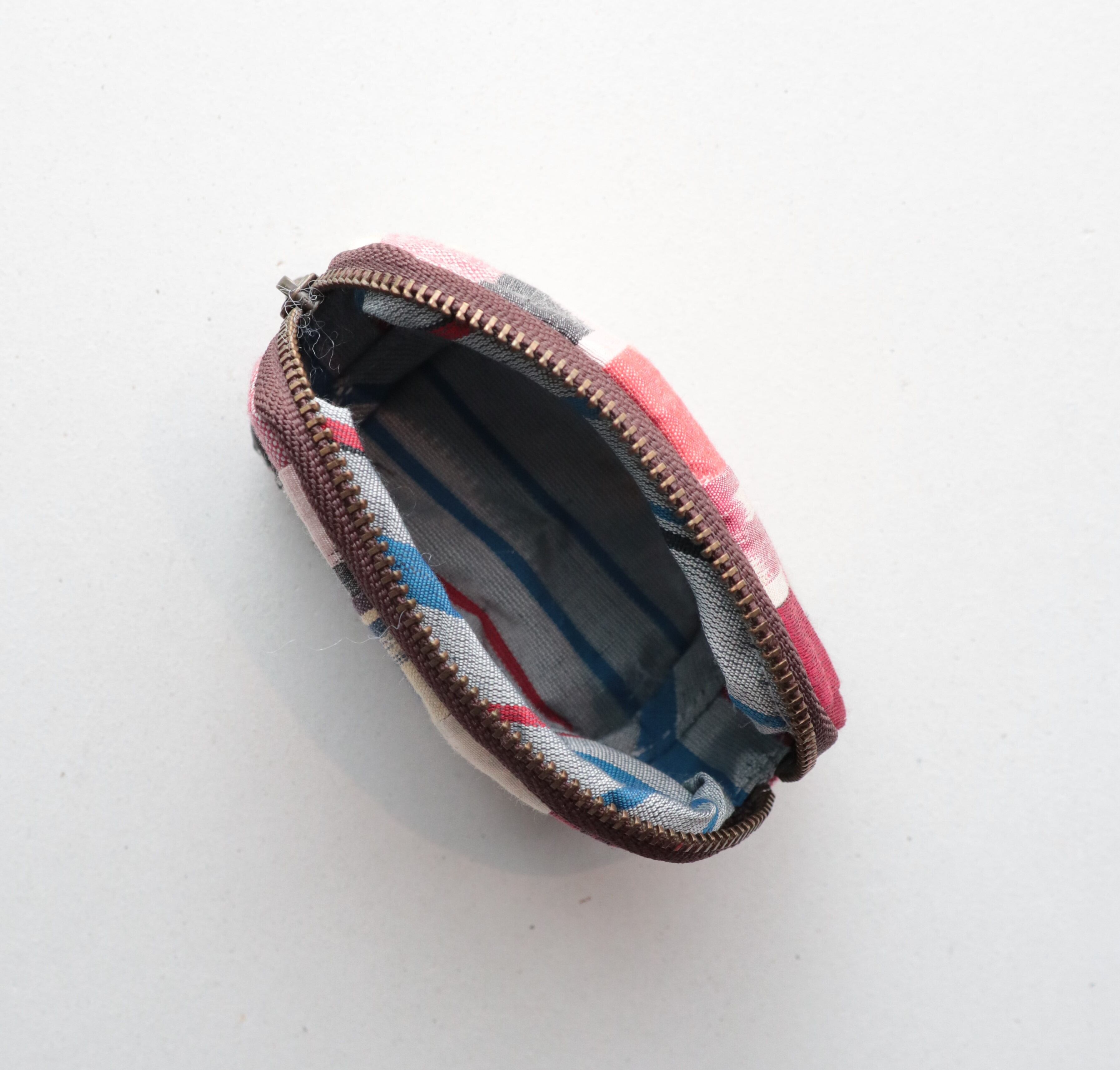 手織りイカット(絣)の端布をパッチワークで作ったコインポーチ。