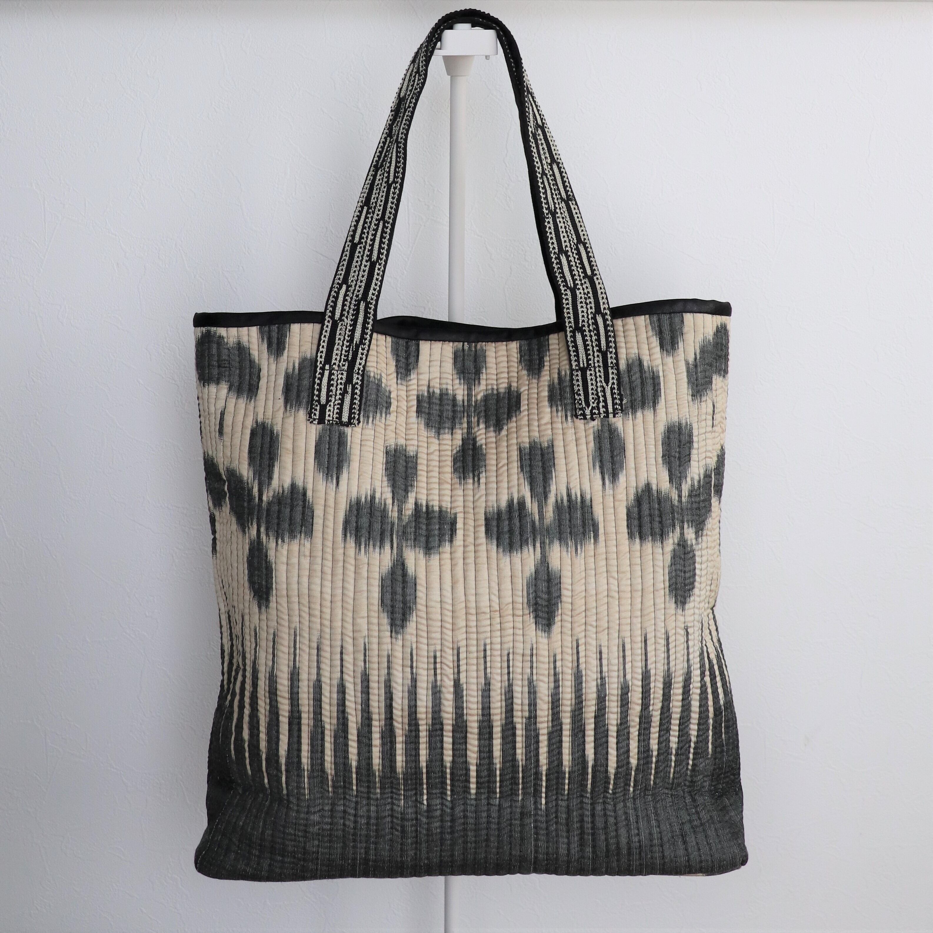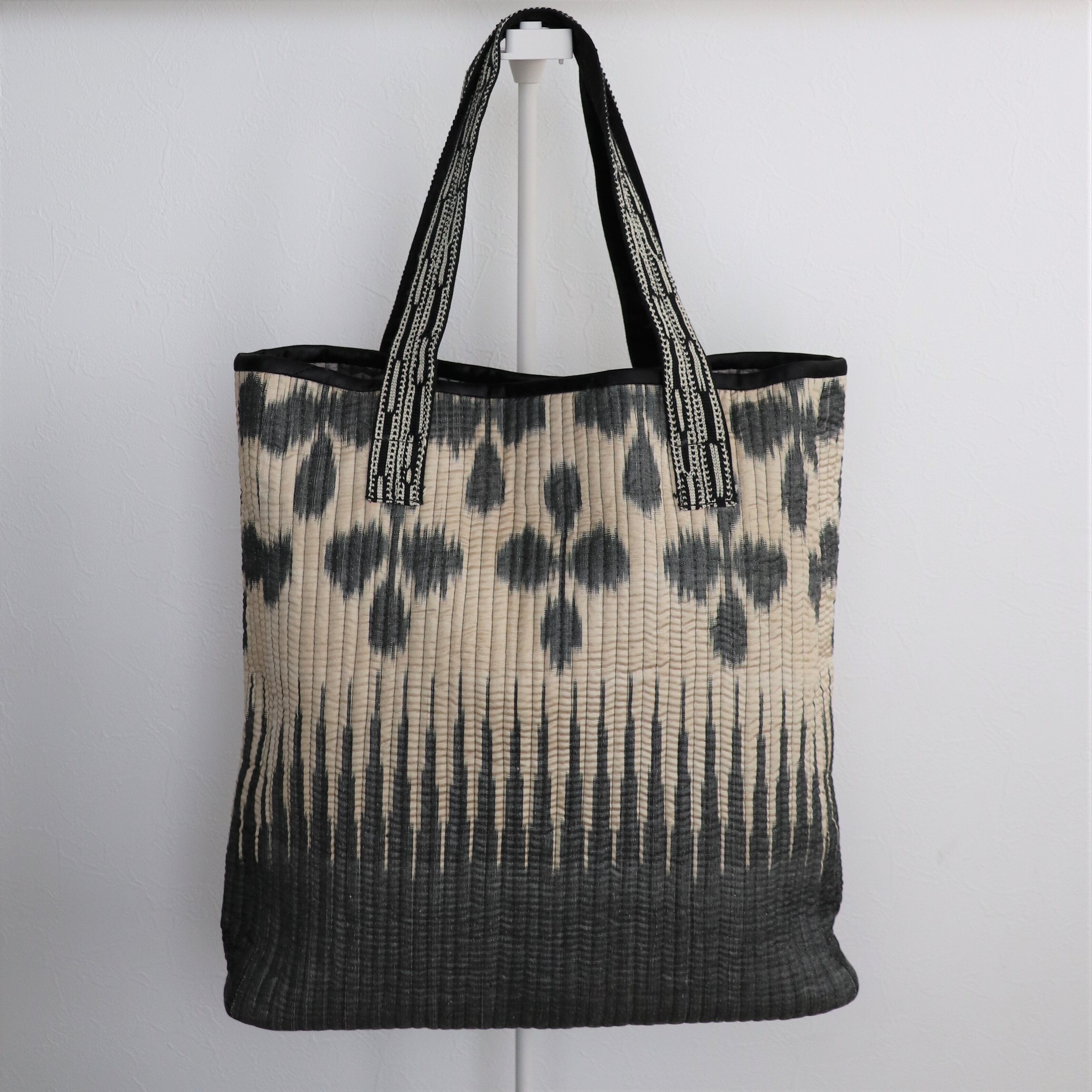Bibi Hanumオリジナルデザインの手織りイカット(絣)をキルト加工し、大きめのシンプルなトートバッグに仕立てました。