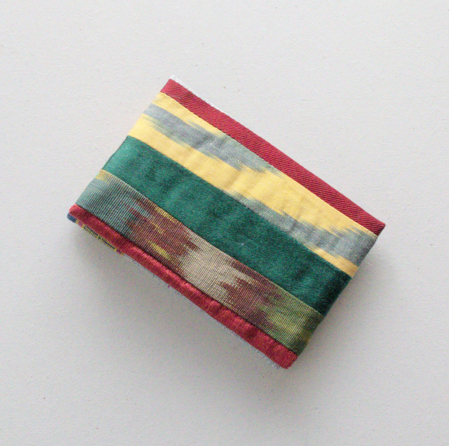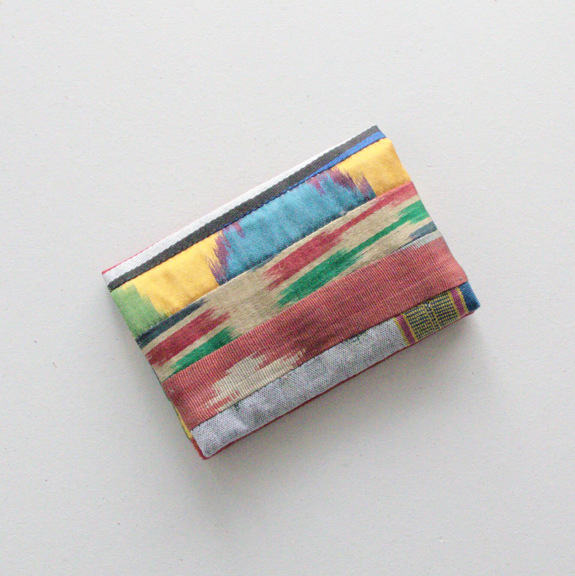 手織りイカット(絣)の端切れをパッチワークにし、名刺入れ/カードケースを作りました。