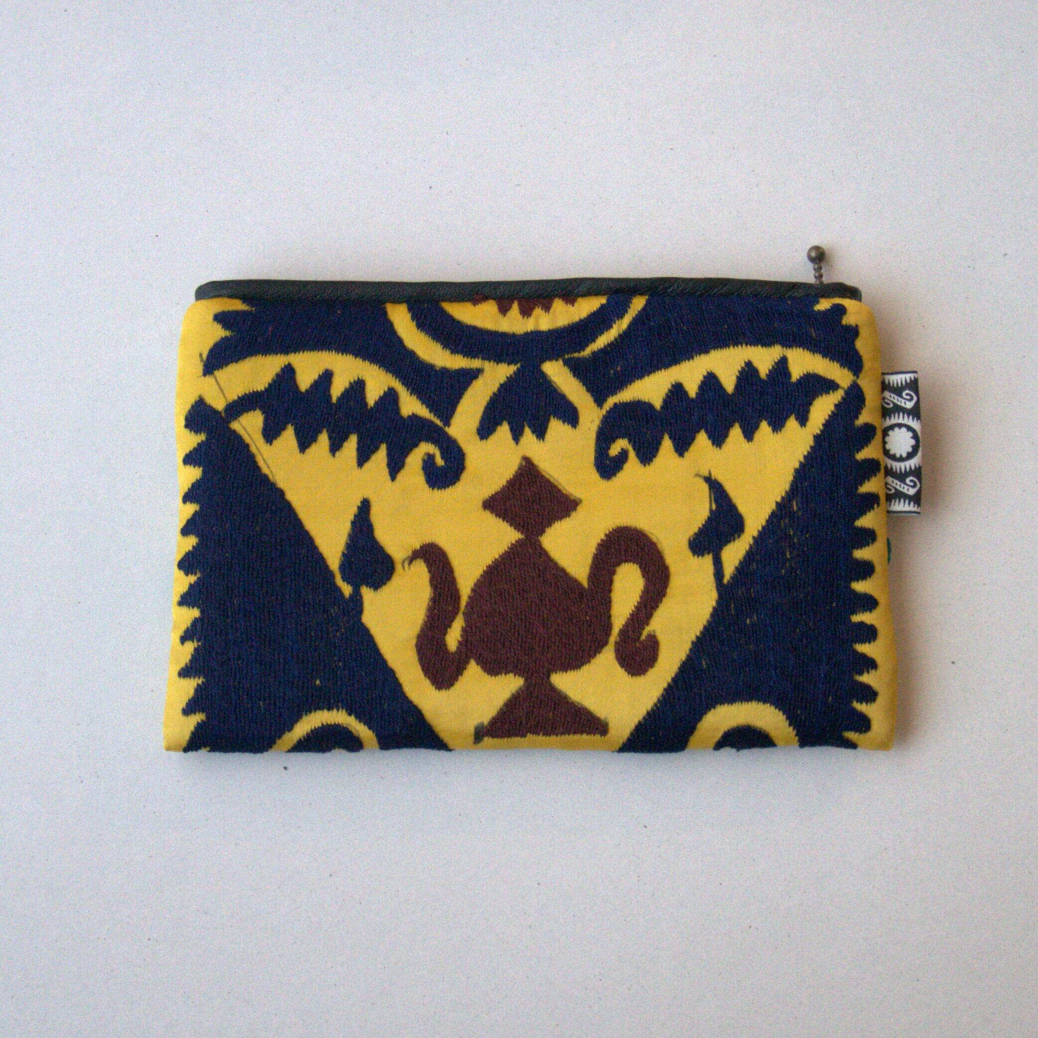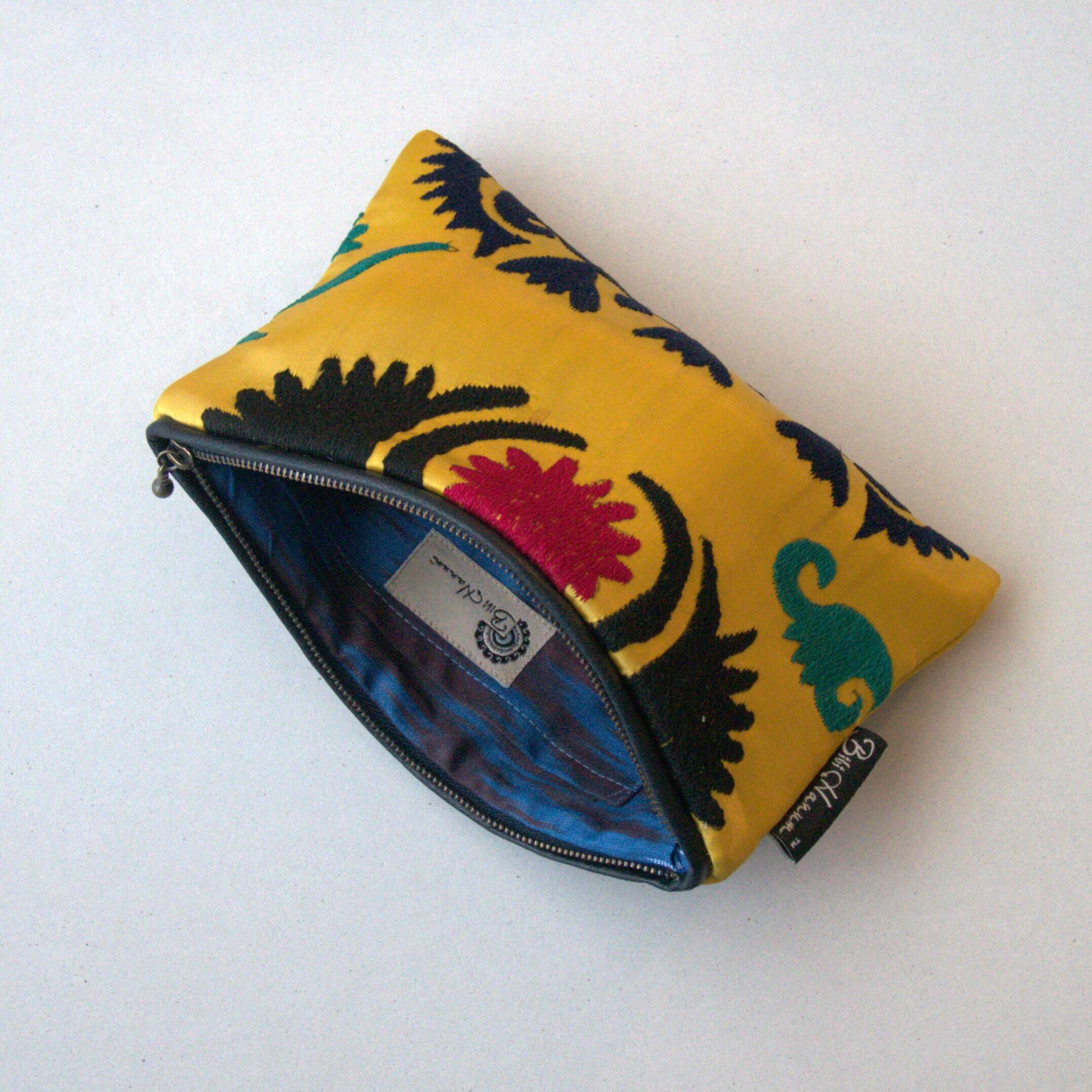 ヴィンテージスザニ(手刺繍布)を大き目のポーチにリメイクしました。