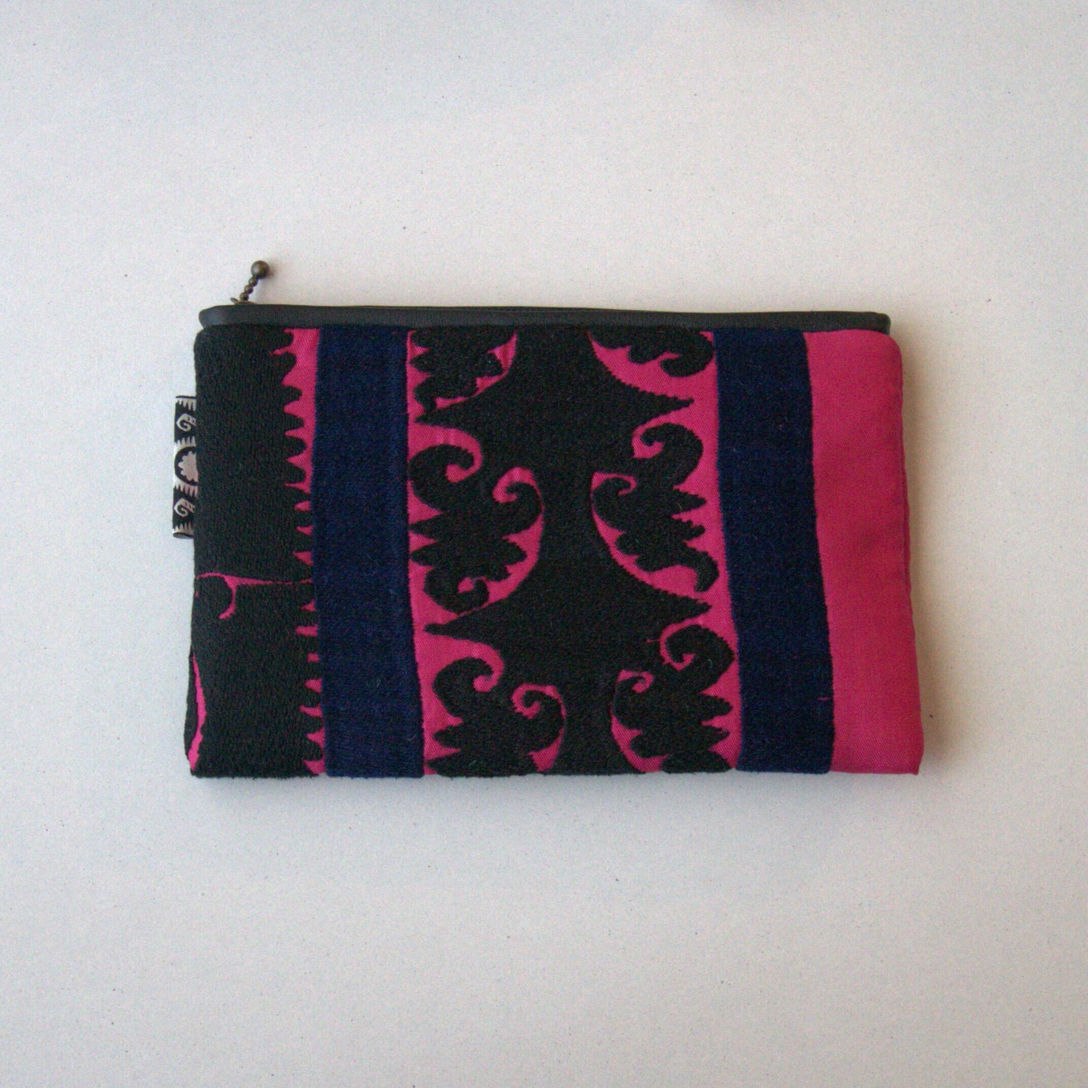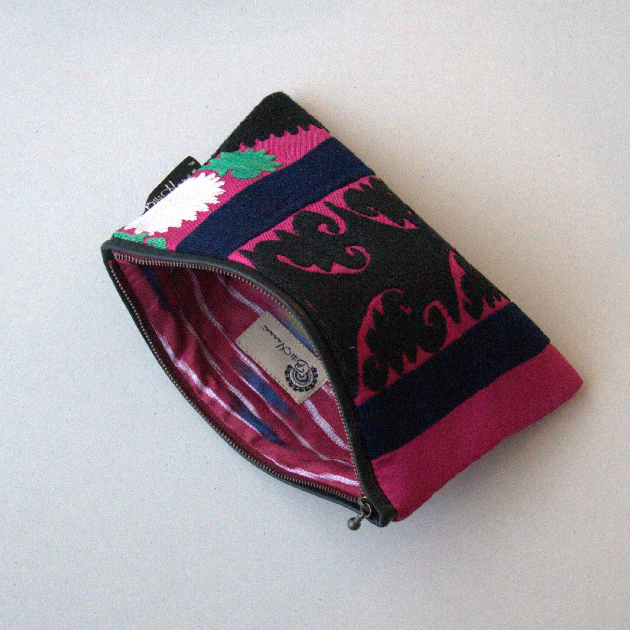 ヴィンテージスザニ(手刺繍布)を大き目のポーチにリメイクしました。