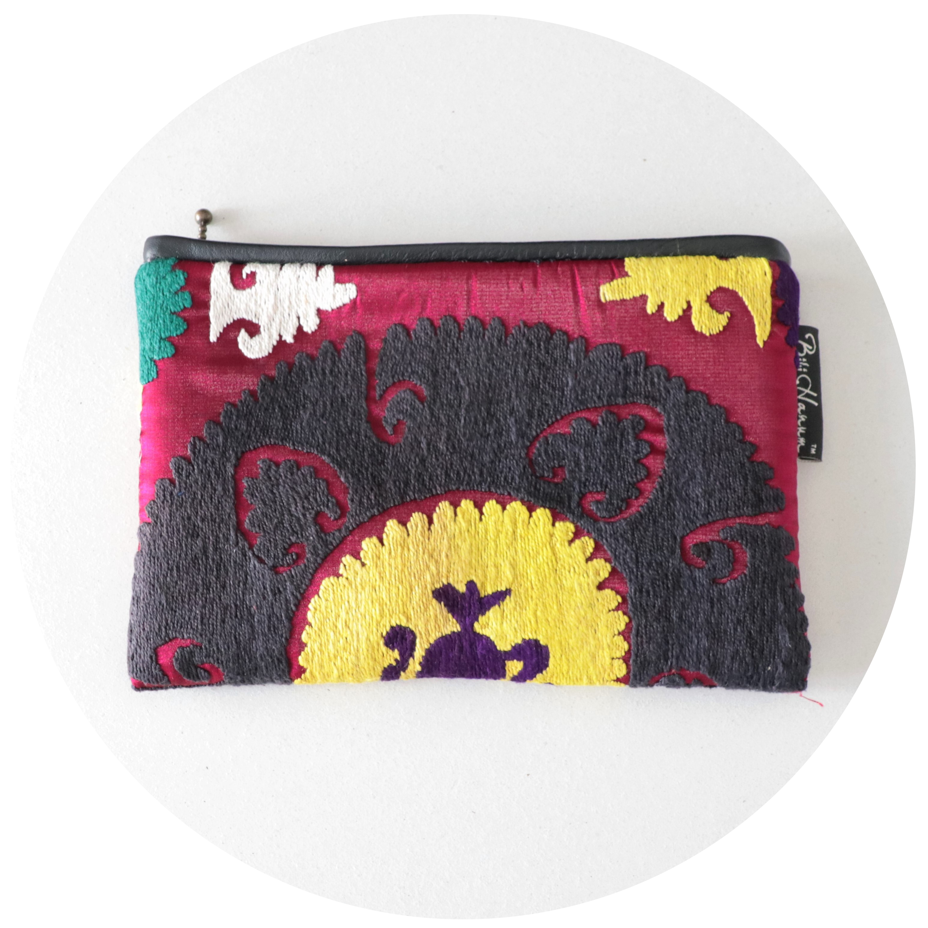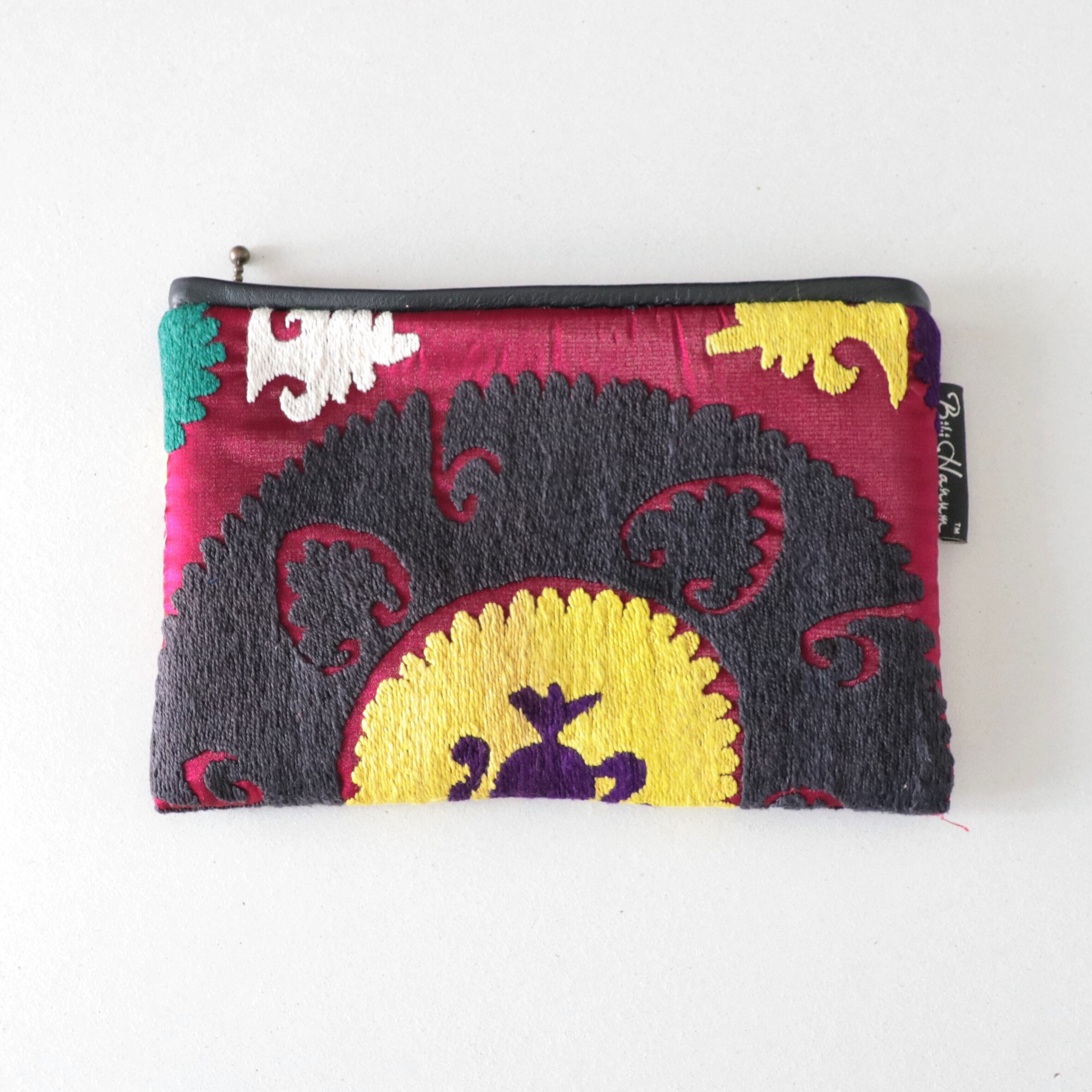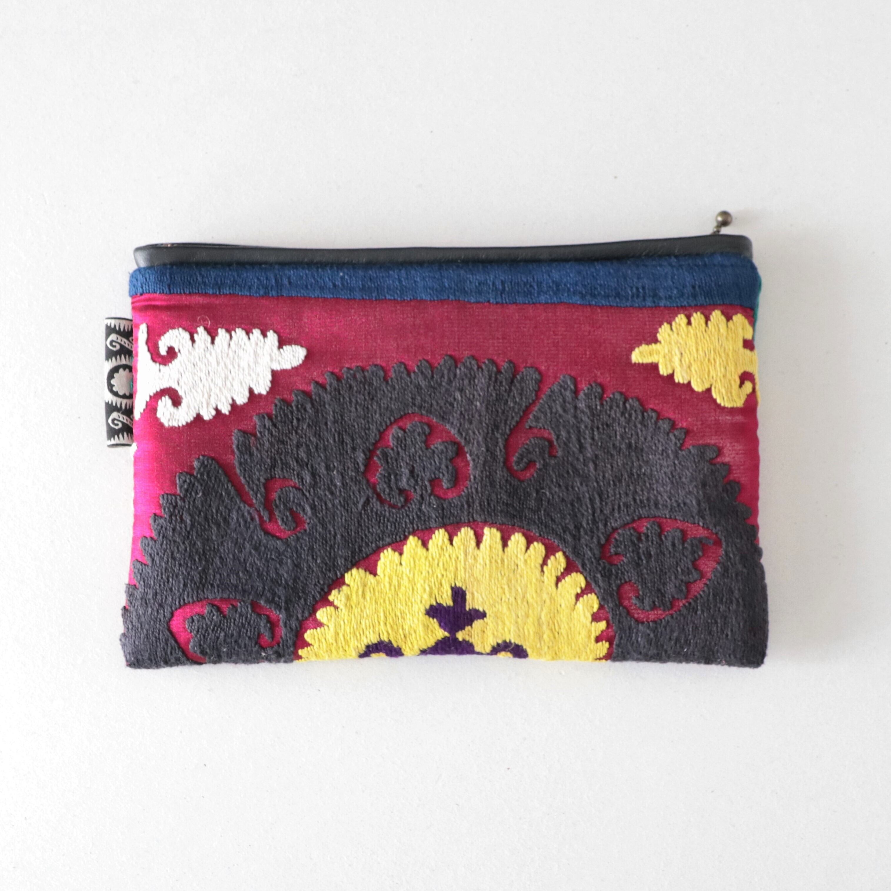 ヴィンテージスザニ(手刺繍布)を大き目のポーチにリメイクしました。