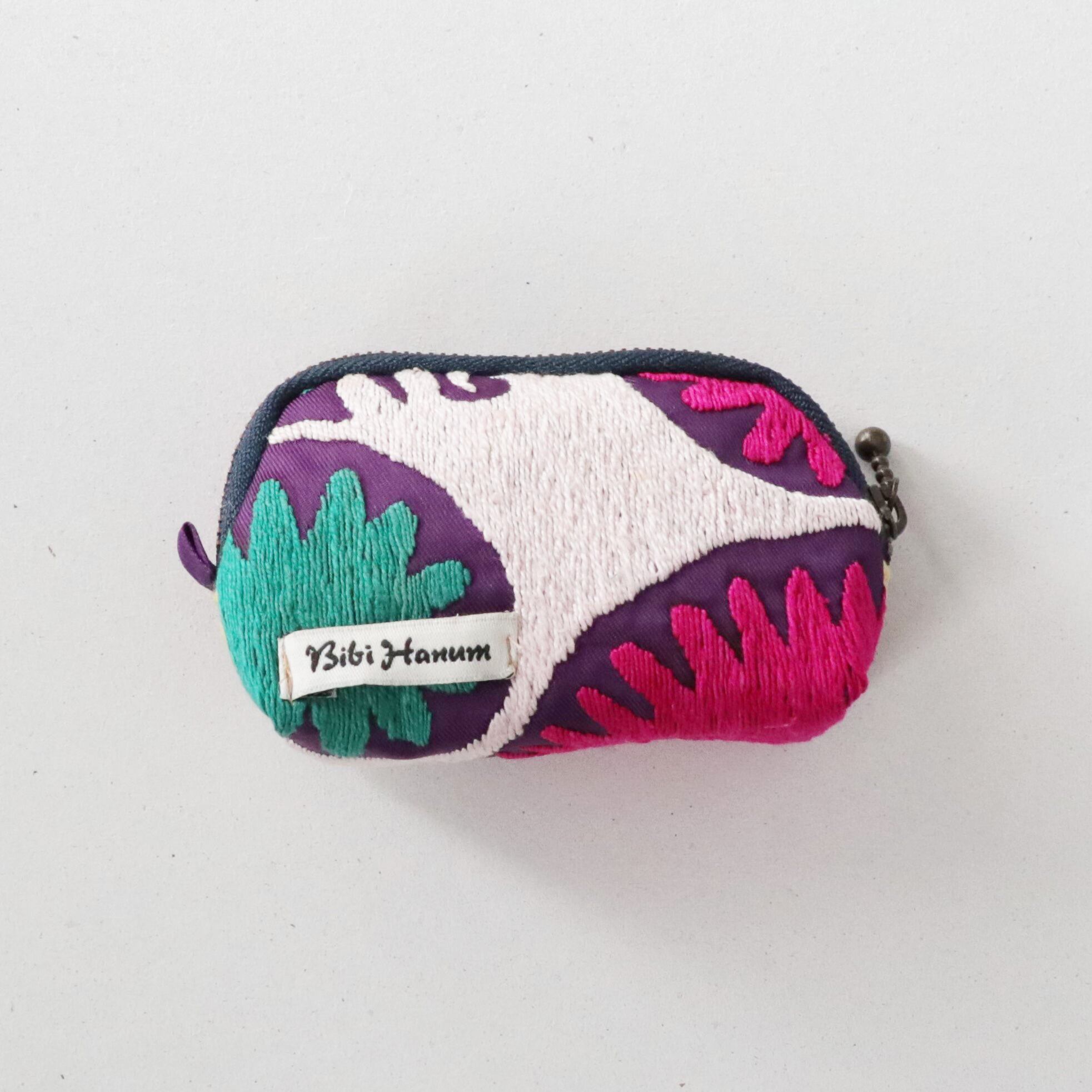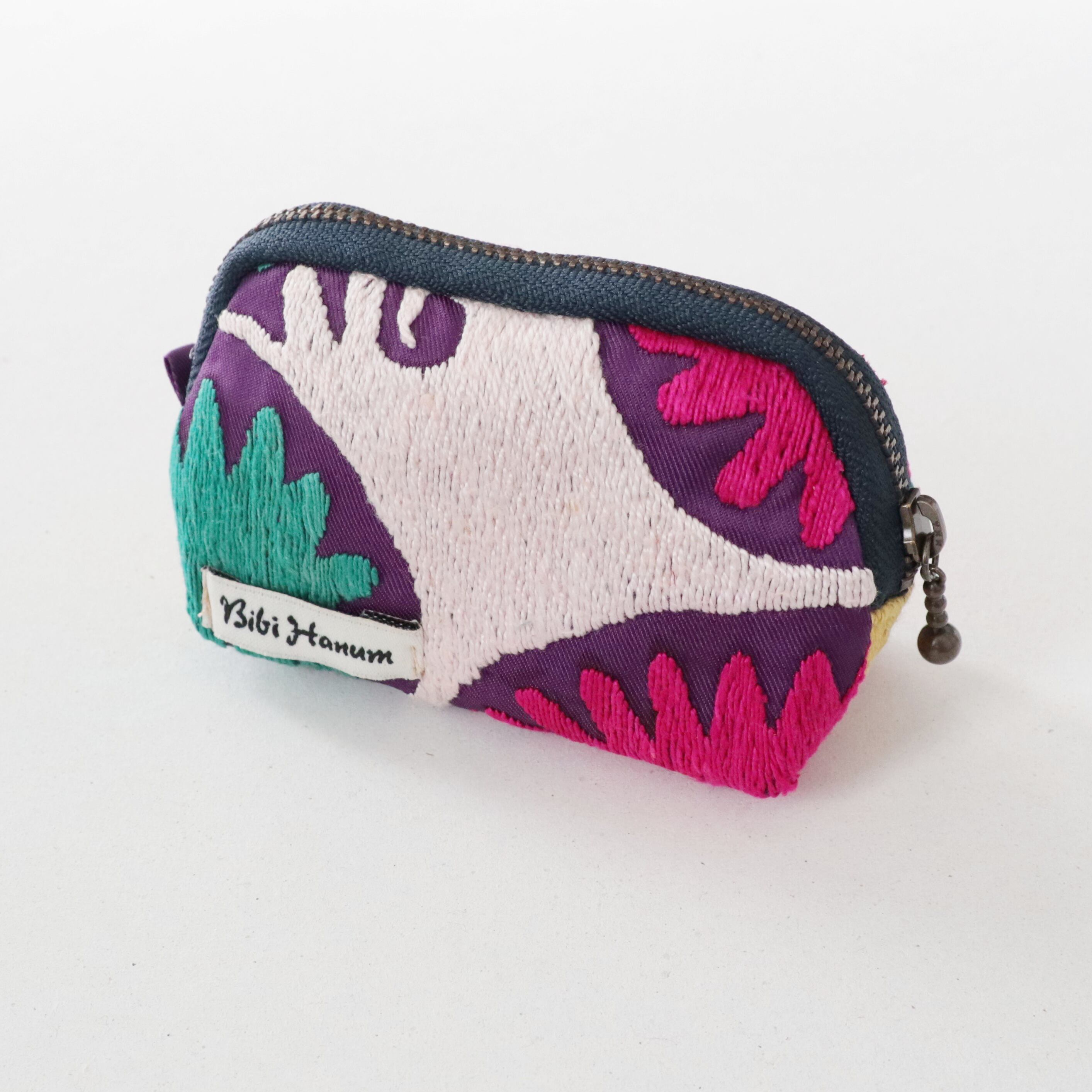 ヴィンテージスザニ(手刺繍布)を小さなコインポーチにリメイクしました。