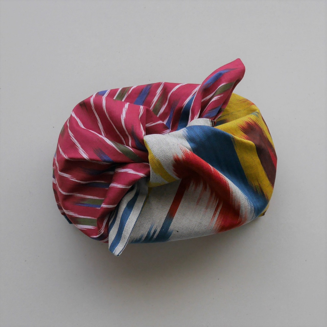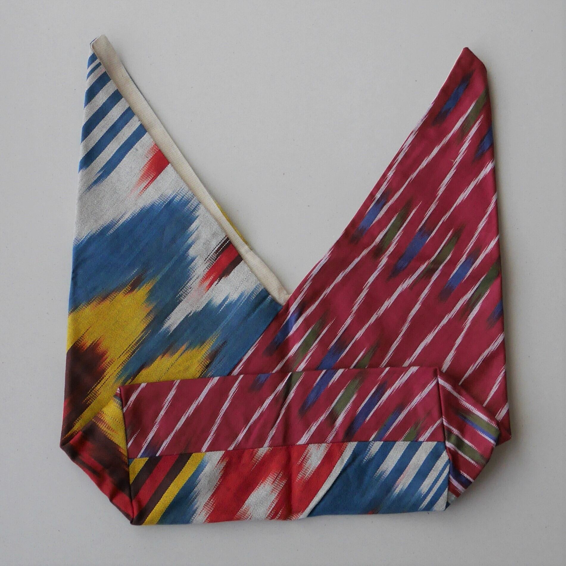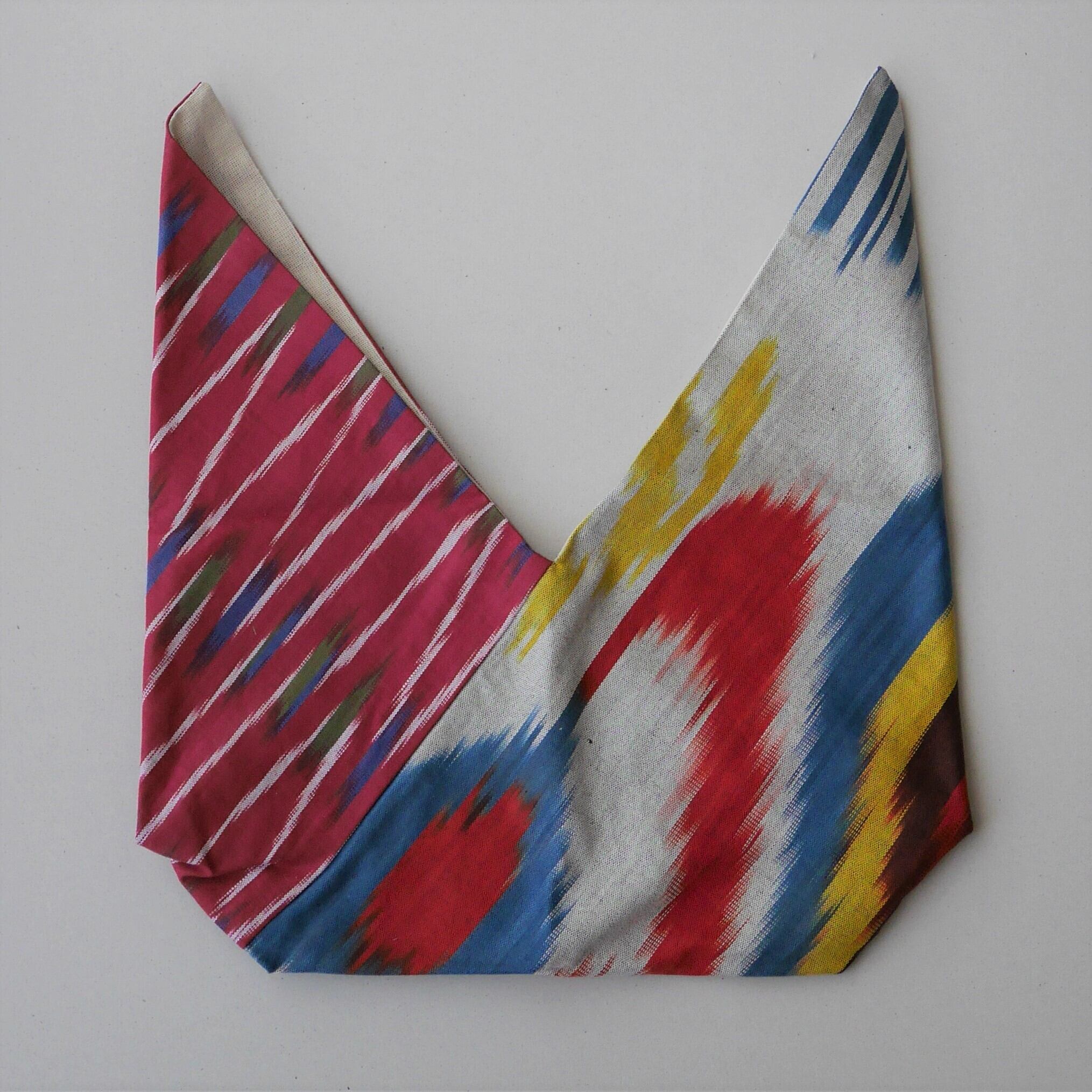 コットン100%の手織りイカット(絣)2種類を組合わせ、お弁当袋サイズのあづま袋を作りました。
