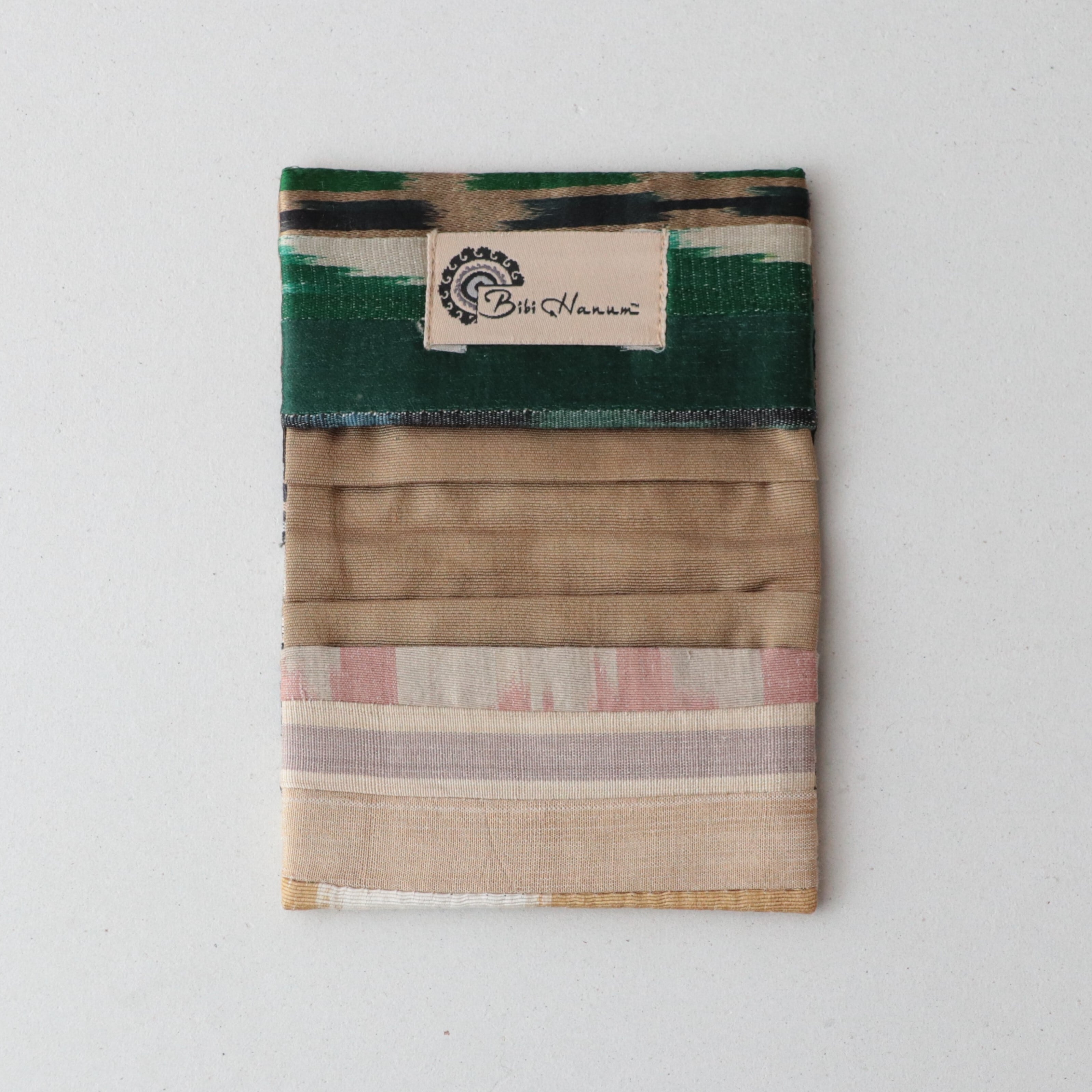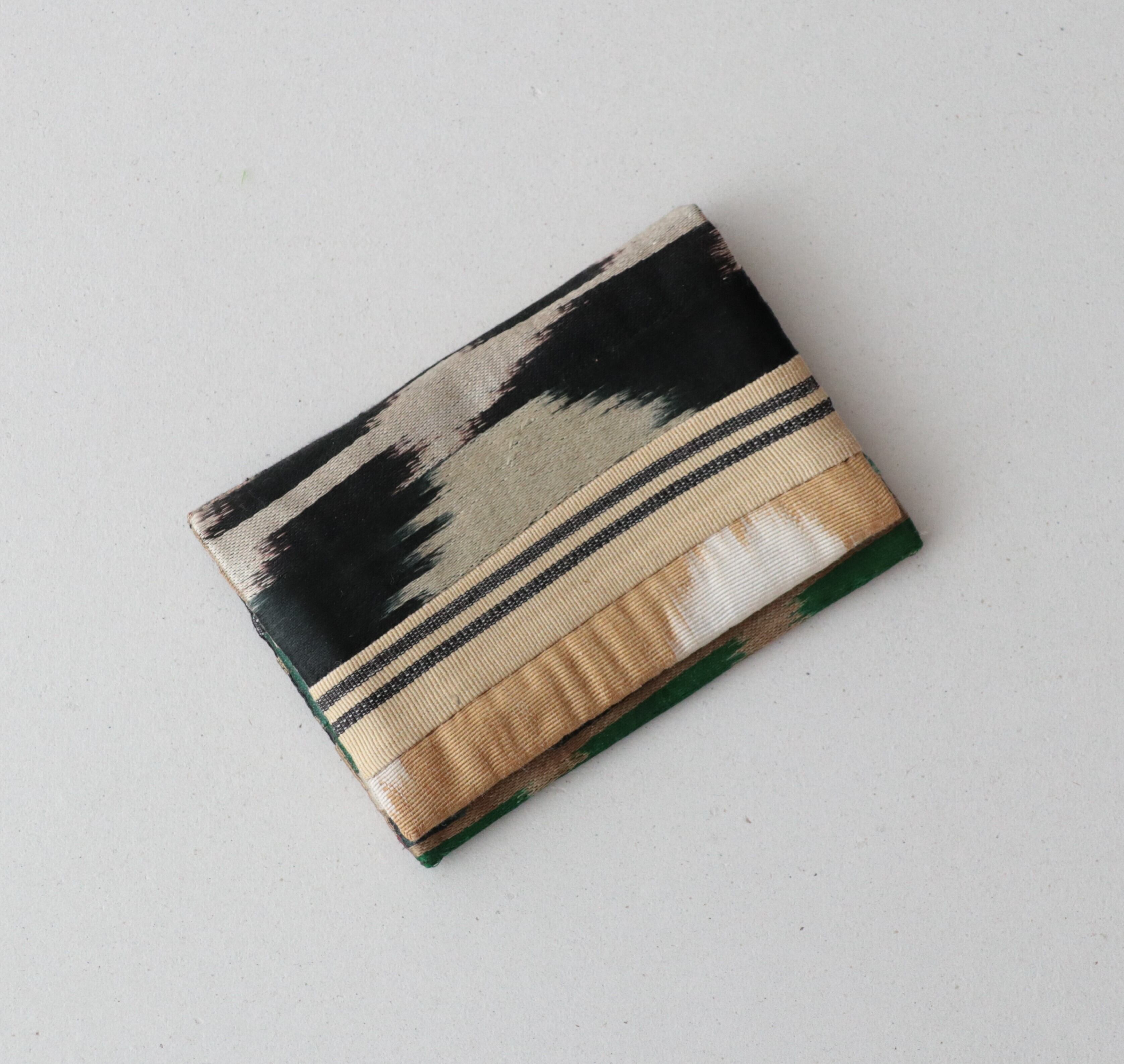 手織りイカット(絣)の端切れをパッチワークにし、名刺入れ/カードケースを作りました。